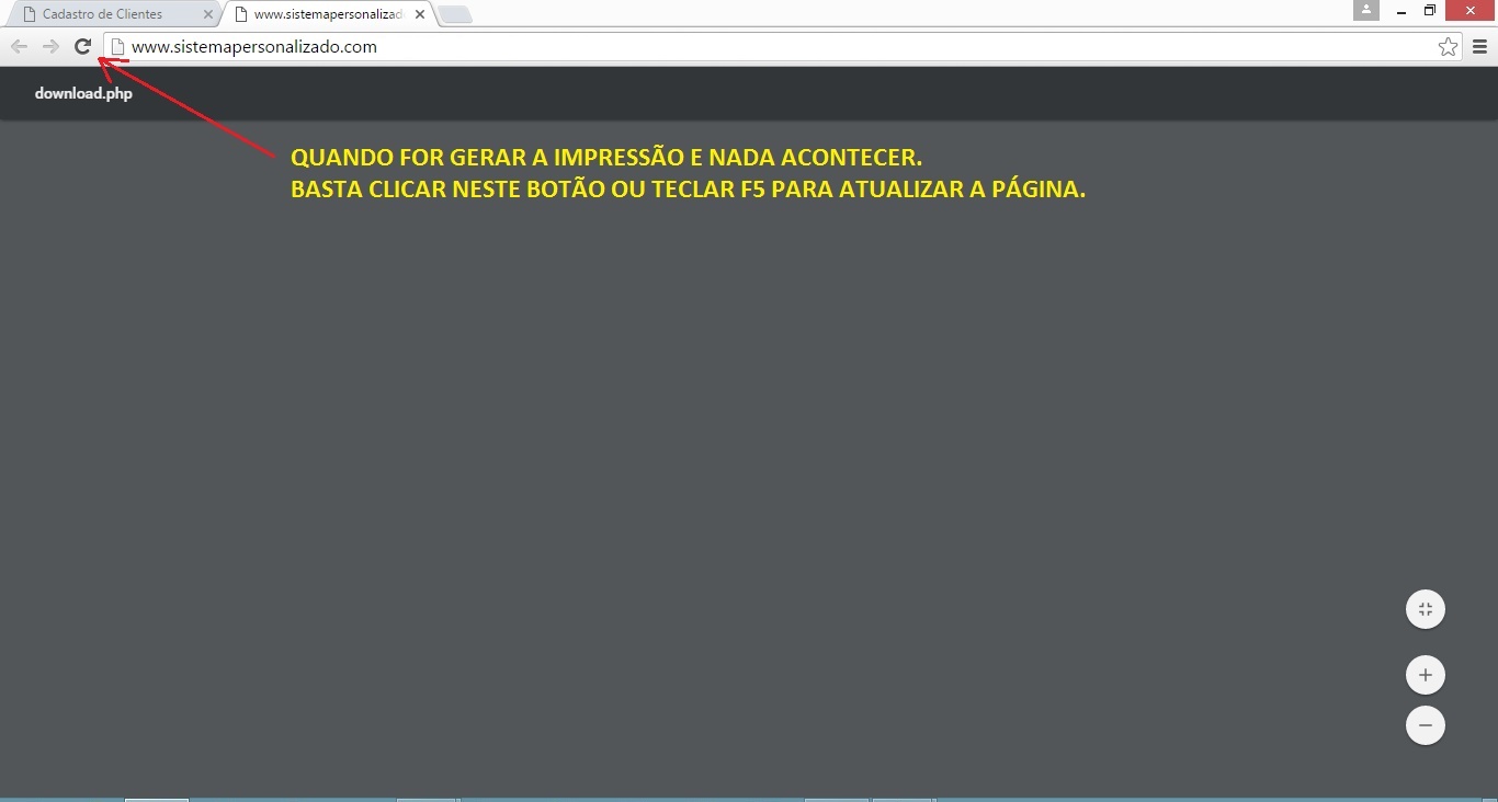 seguinte: ® Quando for gerar a impressão e nada acontecer, basta clicar no botão Atualizar conforme mostra a figura abaixo. A figura abaixo é um exemplo no Navegador Google Chrome, mas em qualquer navegador você também pode teclar F5 para atualizar a página.